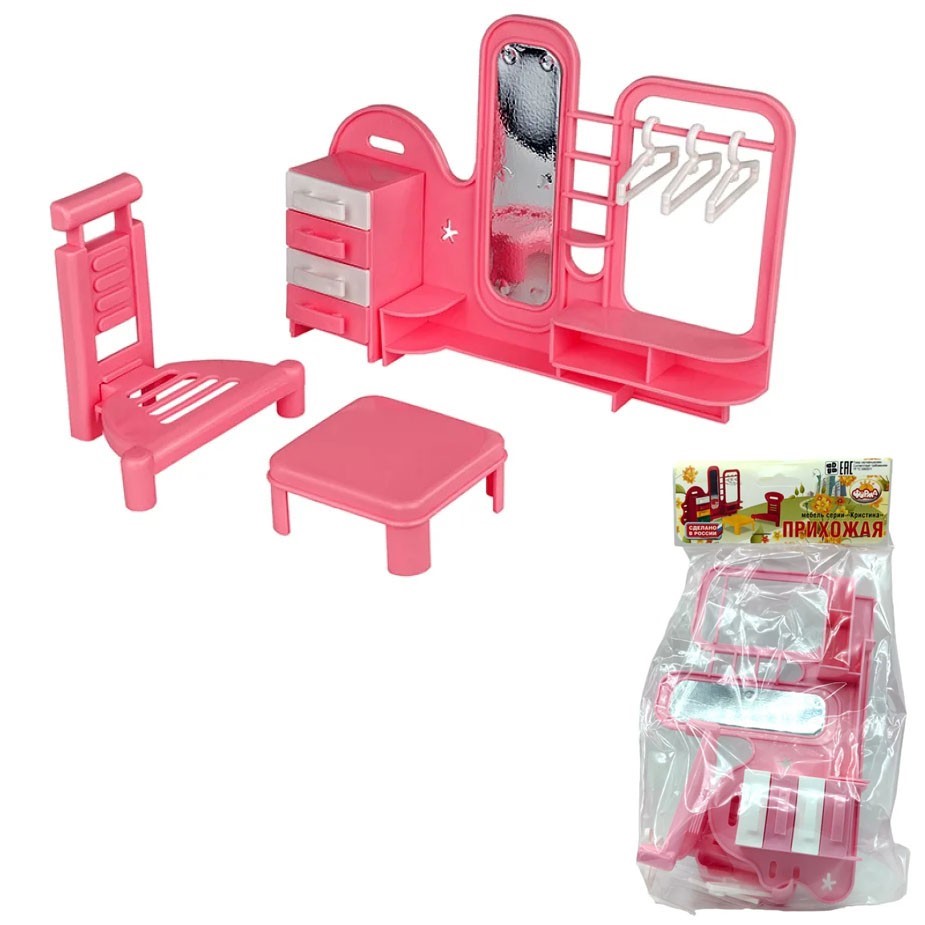 Набор игровой мебели "Прихожая" станет отличным дополнением кукольного домика. Он подойдет для пупсиков и кукол высотой 12-15 см и состоит из стойки с вешалкой, зеркалом и ящичками, а также стола и стула. С такой уютной прихожей малышка сможет придумывать множество увлекательных игр, развивающих фантазию, сюжетно-образное мышление и мелкую моторику. Цвета представлены в ассортименте.