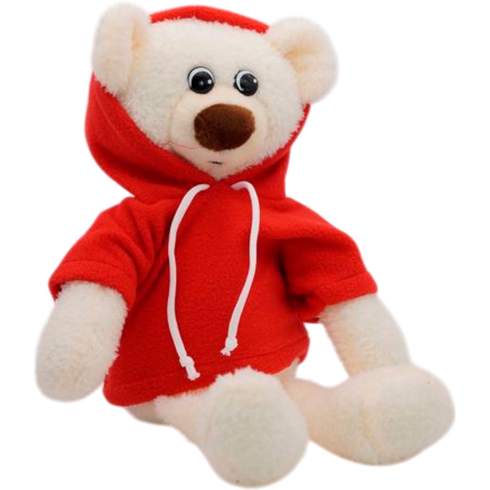 Медведжонок Ермак белый шар. для мел. моторики в красной толстовке флис 21/30 см, 09678W21-36