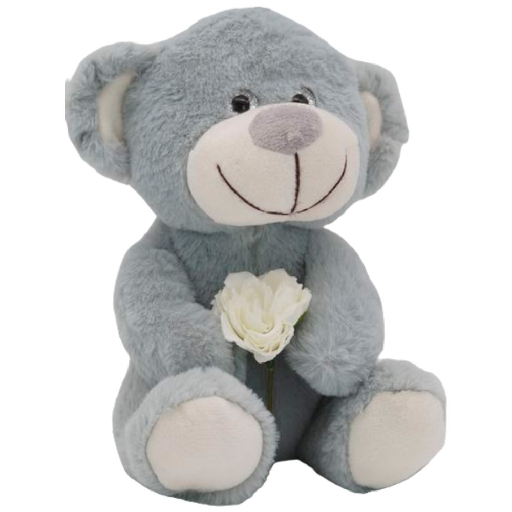 Медвежонок Сильвестр серый, 20/25 см, с шариками для мелкой моторики с белой розой, 0913920-212