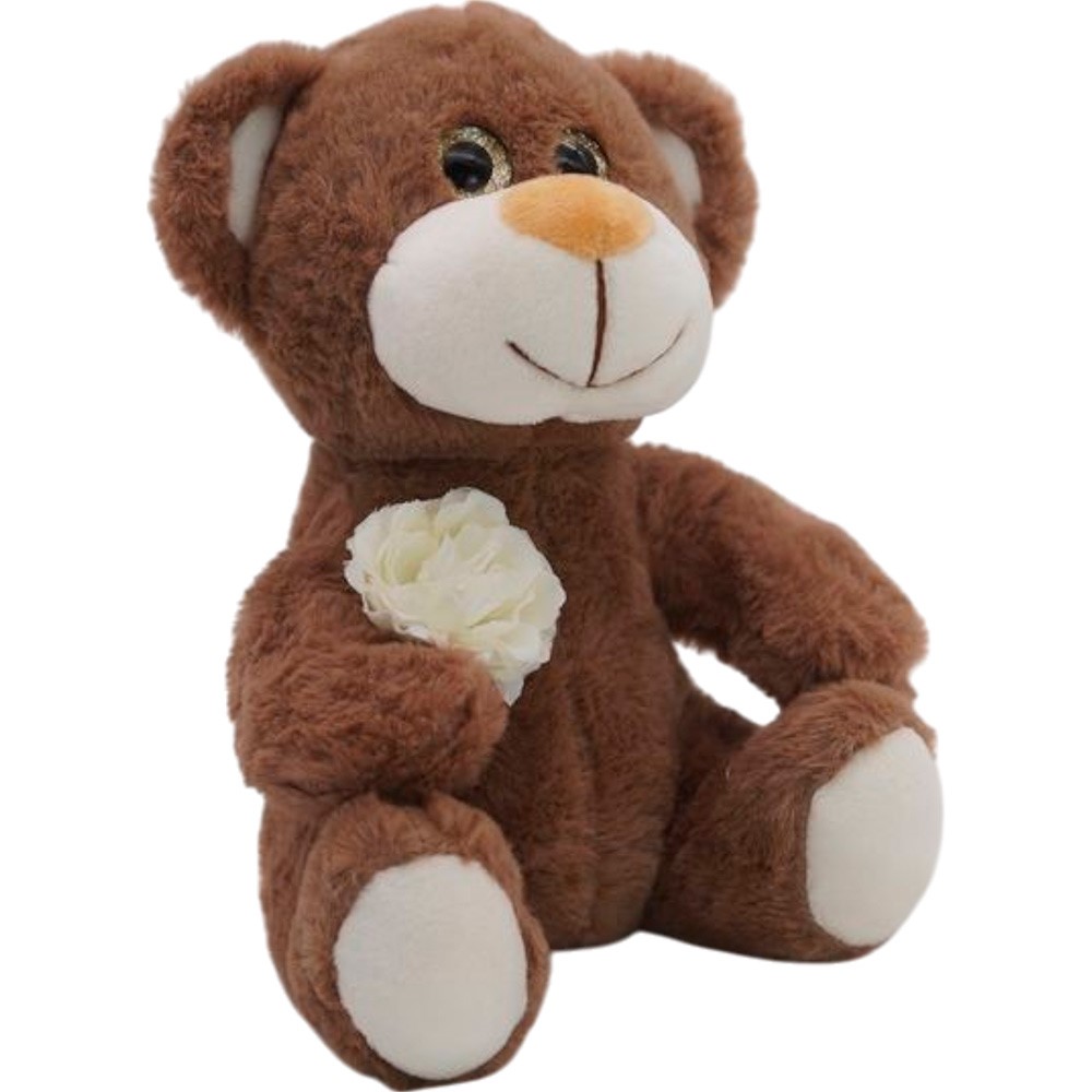 Медвежонок Сильвестр шоколадный 20/25 см с белой розой 0913620-212