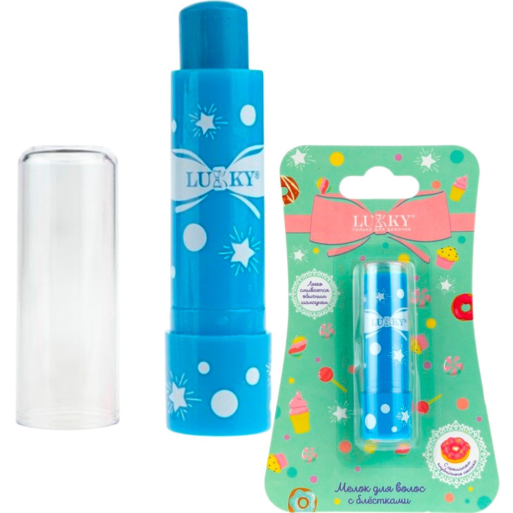 Мелок для волос с блестками с ароматом клубничного пончика 3,4 г, синий Т22784 Lukky