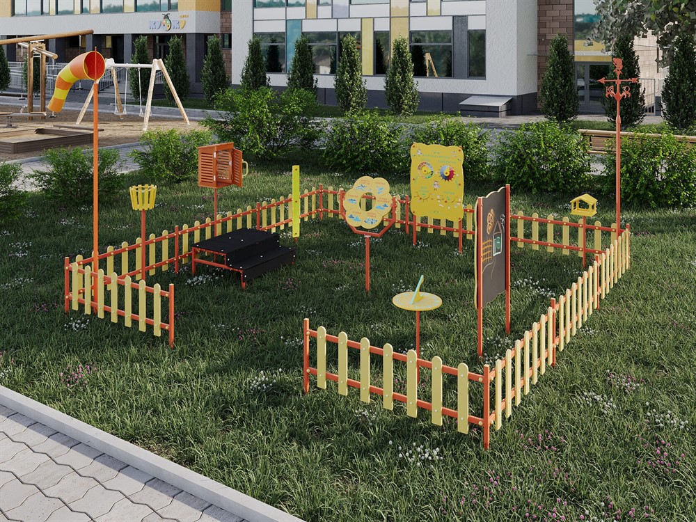 7. Ограждение#nbsp;-#nbsp;#nbsp;отделяет территорию метеоплощадки, с ним метеоплощадка выглядит ещё привлекательнее! Ограждение изготовлено безопасно для детей: отсутствуют острые углы, на крепежных деталях встроены яркие заглушки.