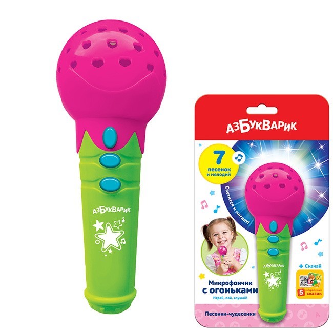 Оригинальный яркий микрофон предназначен для активных игр и развития мелкой моторики и координации движений. Яркая расцветка развлечет малыша и привлечет его внимание. Игрушка учит пониманию причинно-следственной связи, помогает тренировать моторику и координацию движений, восприятие формы и цвета. Музыкальный микрофон оборудован кнопками, нажимая на которые можно прослушать мелодии. Работает от батареек. Игрушка привлекает внимание и способствует развитию тактильного, зрительного и слухового восприятия малыша. Игрушки сделаны из прочного и безопасного материала.