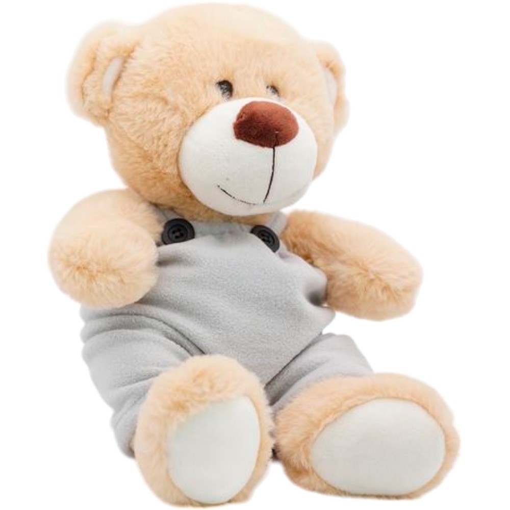 Мишка Берни 22/30 см в сером флисовом комбинезоне 0641822-39