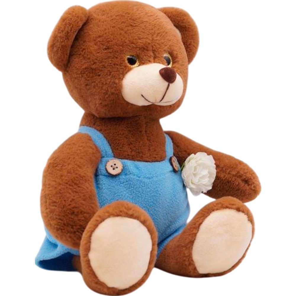 Мишка Топотыж, шарики мелк. мотор., голубой комбинезон и белая роза 016527S-212-63