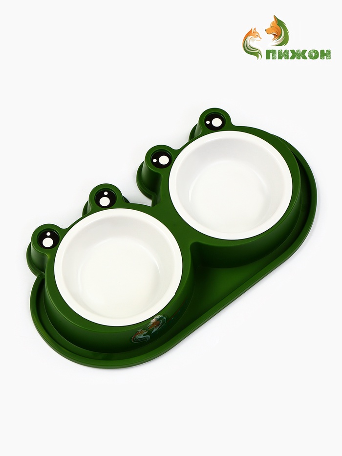 Миска двойная, 160 мл, 29.5×14×4 см, фигурная, пластик, зелёная