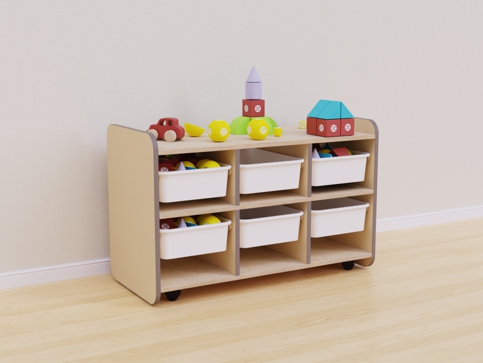 Оборудование является прекрасным решением для современных детских садов и других детских образовательных учреждений, где важны удобство, безопасность и гигиена. Практичные ящики полностью вынимаются из шкафа для очистки и дезинфекции. Они легкие и прочные, и дети могут самостоятельно ими пользоваться, чтобы достать или положить игрушку. Высота модуля также позволяет размещать на поверхности конструкции обучающие игры и дидактическое оборудование.