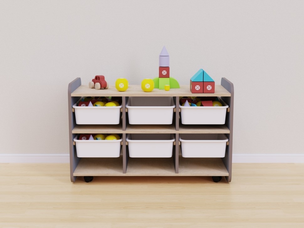 Оборудование является прекрасным решением для современных детских садов и других детских образовательных учреждений, где важны удобство, безопасность и гигиена. Практичные ящики полностью вынимаются из шкафа для очистки и дезинфекции. Они легкие и прочные, и дети могут самостоятельно ими пользоваться, чтобы достать или положить игрушку. Высота модуля также позволяет размещать на поверхности конструкции обучающие игры и дидактическое оборудование.