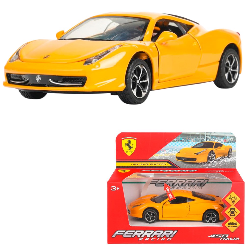 Модель 1651430-R-WOD Ferrari 458 italia 14 см, двери, багажник. инерция Технопарк в кор.
