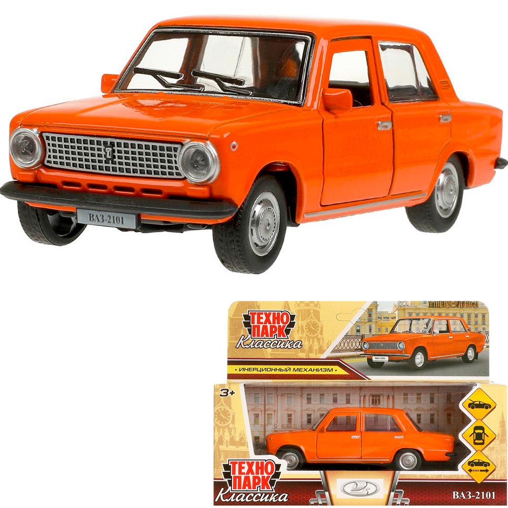 Модель 2101-12-OG ВАЗ-2101 длина 12 см, двери, багаж, инерц, оранжевый Технопарк в кор