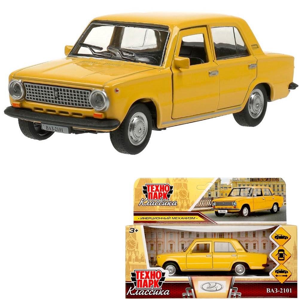 Модель 2101-12-YE ВАЗ-2101 длина 12 см, двери, багаж, инерц, желтый Технопарк