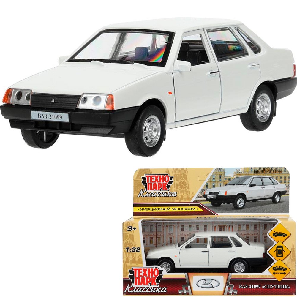 Модель 21099-132-WH ВАЗ-21099 "Спутник" 13,1 см, двери, багаж, белый Технопарк в кор.