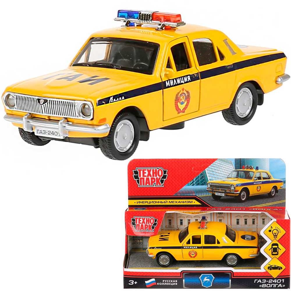 Модель 2401-12SLPOL-YE ГАЗ-2401 Волга Полиция желтый Технопарк в коробке
