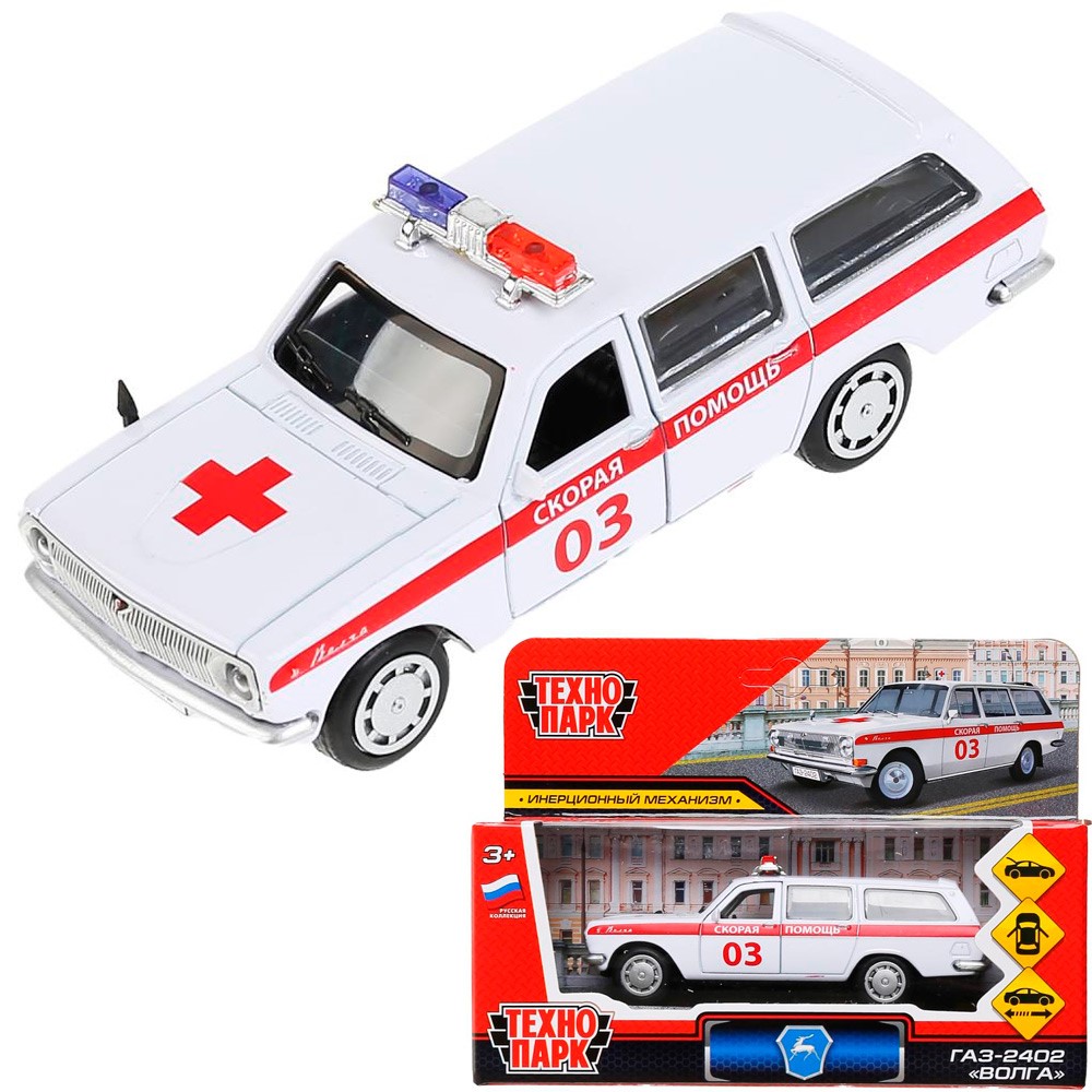 Модель 2402-12AMB-WH ГАЗ-2402 Волга Скорая белая Технопарк в коробке