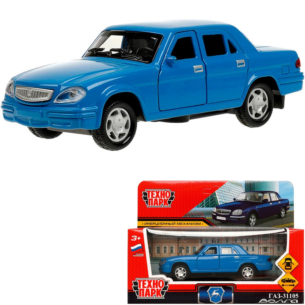 Модель 3110-12-BU ГАЗ -31105 «Волга» 12 см, двери, багаж, инерц, синий Технопарк в коробке /72/