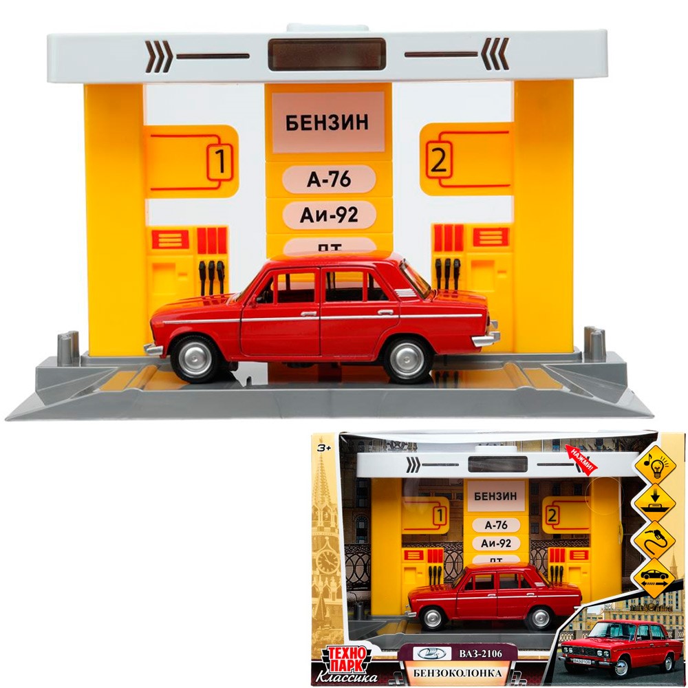 Модель OILSTA-22PL2106-YE бензоколонка С МАШИНКОЙ 21 см ВАЗ-2106 Технопарк в коробке