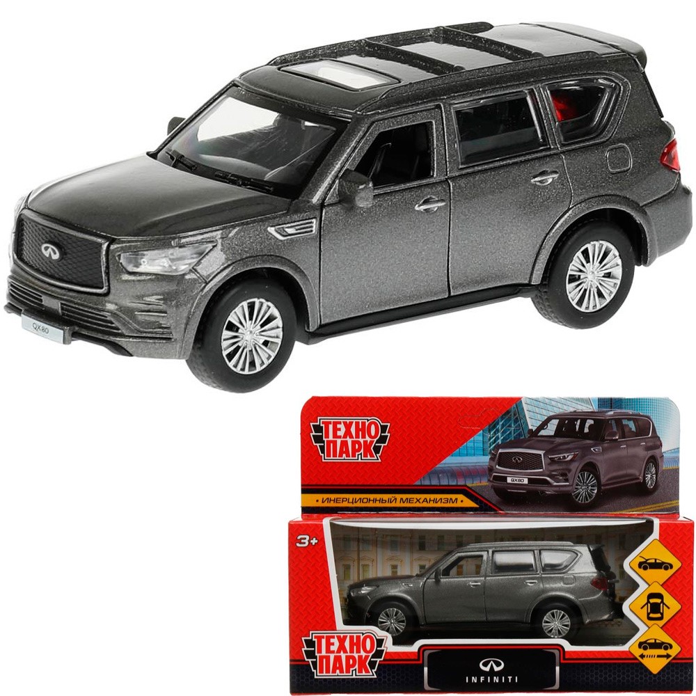 Модель QX80-12-GY INFINITI QX80, длина 12,5 см, двери, багаж, инер, серый Технопарк в коробке /72/