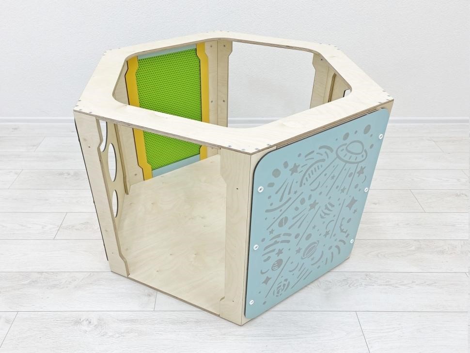 Описание и комплектация для прайсаНовый креативный вариант традиционных детских домиков – шестигранные модули-конструкторы, позволяющие создавать трансформируемое игровое пространство. Внутри модули украшены тактильными панелями для развития сенсорной чувствительн