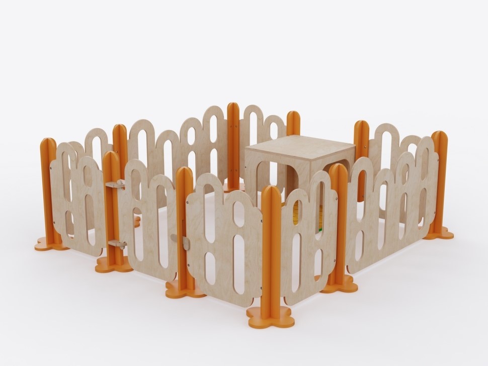 Манеж обеспечивает безопасность малышей, а дополнительный элемент конструкции — куб — расширяет игровое пространство и способствует развитию координации и фантазии.