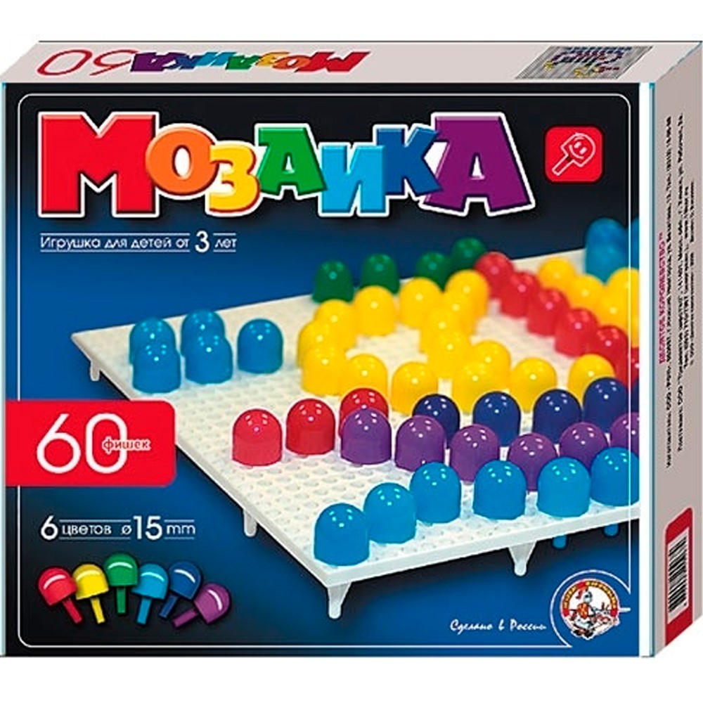 Комплектация: детали мозаики - 60 шт. (6 цветов), поле белое