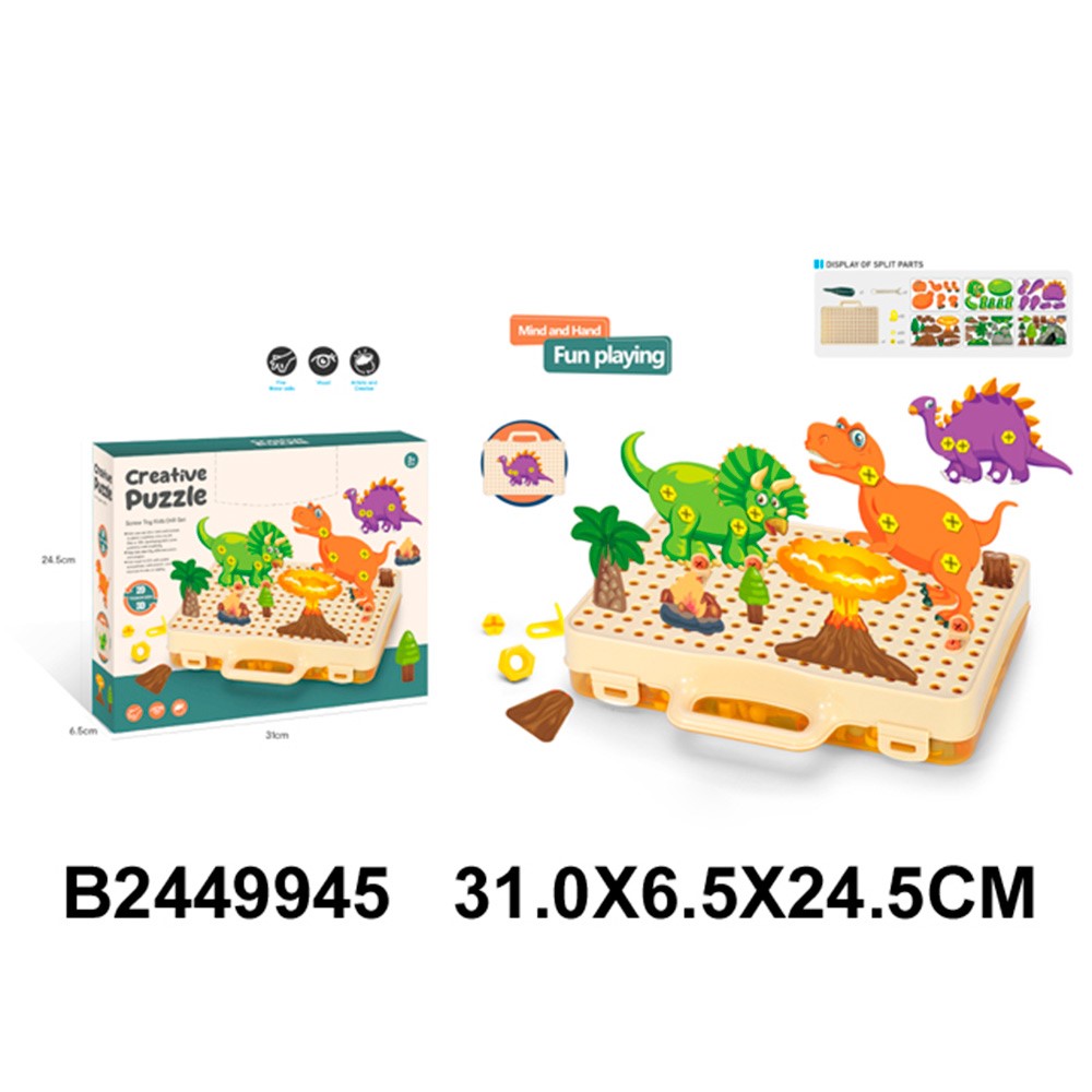 Комплектация: детали мозаики, игровое поле, отвертка, коробка с ячейками