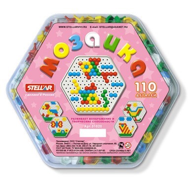 Комплектация: детали мозаики - 110 шт. (5 цветов), поле