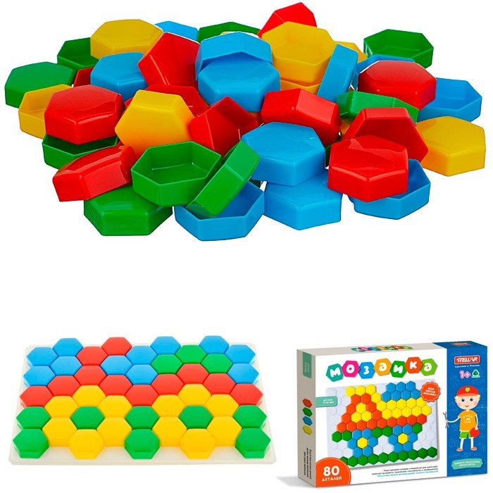 Пластиковая мозаика для самых маленьких, состоящая из 80 удобных цветных, крупных фишек, диаметром 4 см. Малыш будет выкладывать разноцветные элементы на игровом поле, тренируя при этом мелкую моторику, усидчивость, способность доводить начатое до конца, а так же логическое и образное мышление.