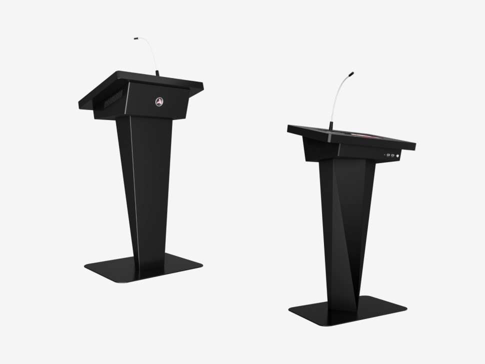 Интерактивная трибуна для выступлений. Изящный дизайн корпуса, сенсорный дисплей, микрофоны, а также набор всех необходимых разъемов для подключения техники помогут качественно донести информацию до слушателей и запомнить ваше выступление. Возможность брендирования корпуса станет неотъемлемой частью для гармоничного вписывания в пространство.