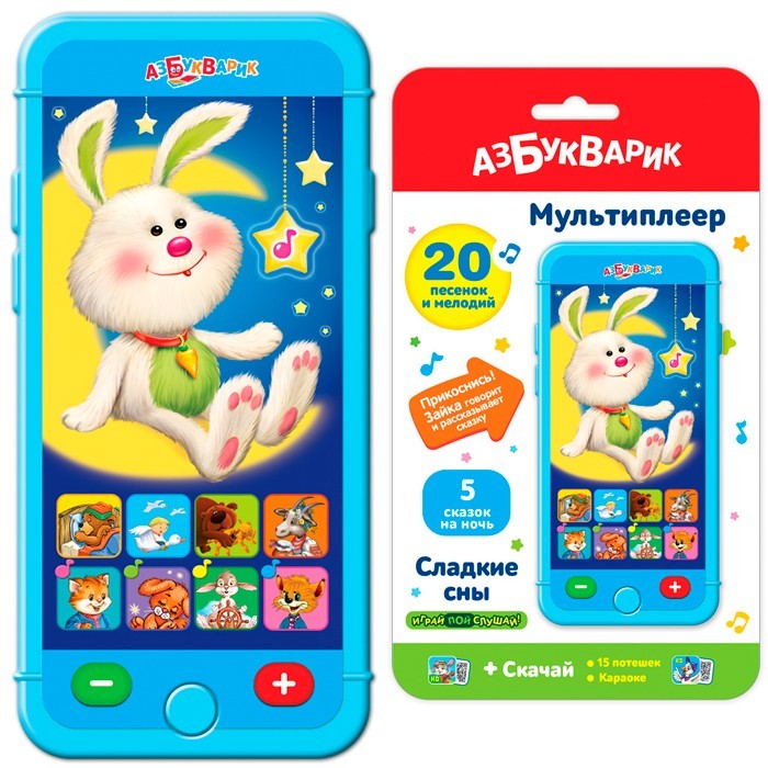 Этот волшебный мультиплеер поможет малышам заснуть! Перед сном ребёнок сможет послушать 20 любимых песенок ("Гули-гуленьки", "Спи, моя радость, усни", "Баю-баюшки-баю" и другие) и 5 добрых сказок ("Верное средство", "Гуси-лебеди", "Бычок - смоляной бочок", "Коза-дереза", "Заюшкина избушка"). Особенным плюсом для родителей будет наличие кнопочек для регулировки громкости песен.