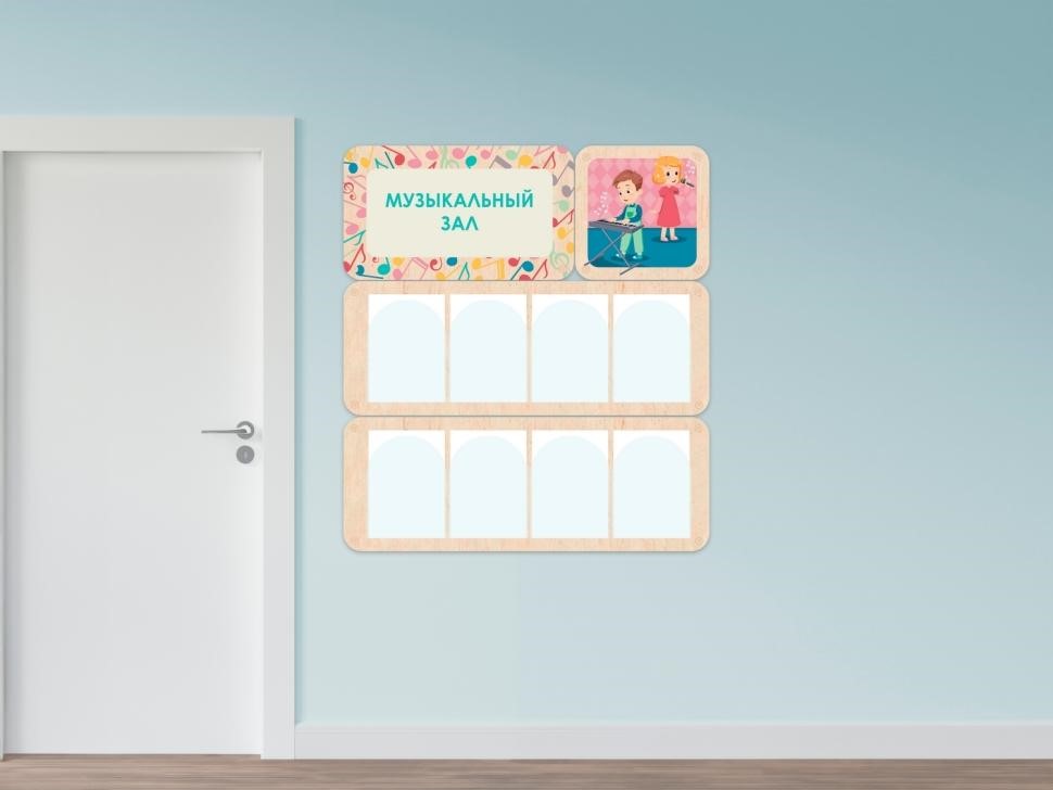 Стенд информации для детского сада, который рассказывает детям и родителям важные сведения о работе музыкально зала. В акриловых карманах можно разместить документацию, расписание занятий, правила и многое другое. Яркий заголовок акцентирует внимание посетителей на этой информации.