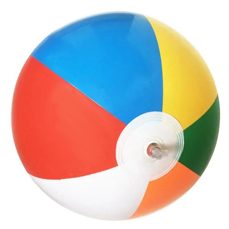 Яркий надувной пляжный мяч может использоваться как для плавания и игр в воде, так и для игр на суше.