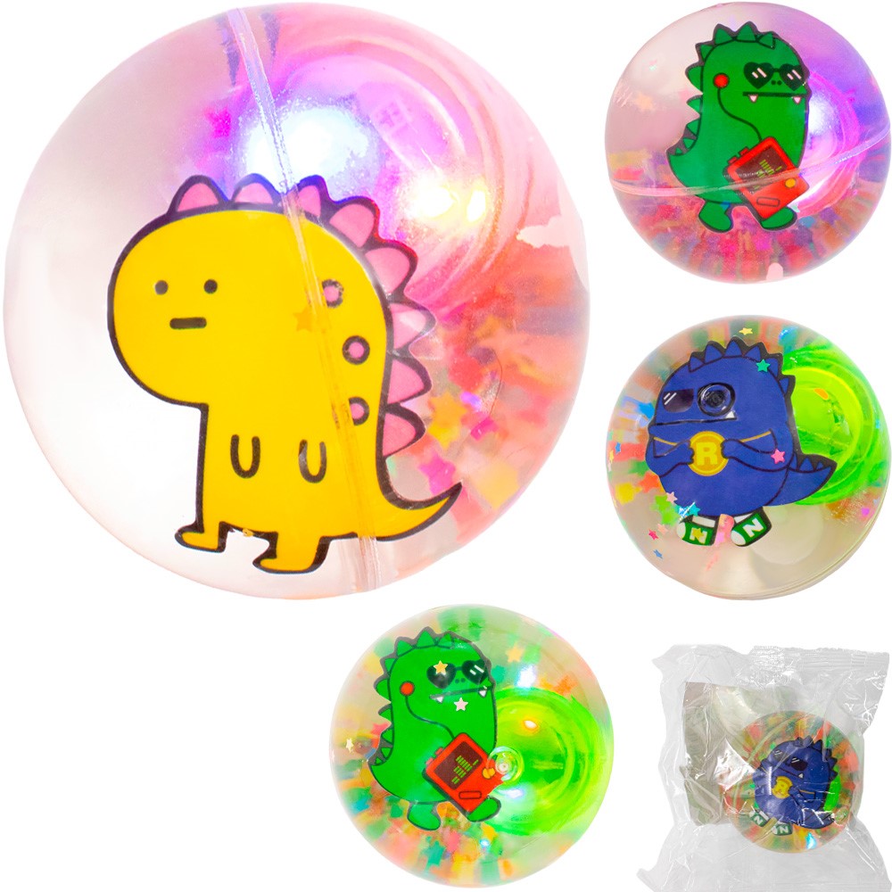 - внутри мяча жидкость с различными фигурками и изображением забавного динозаврика;