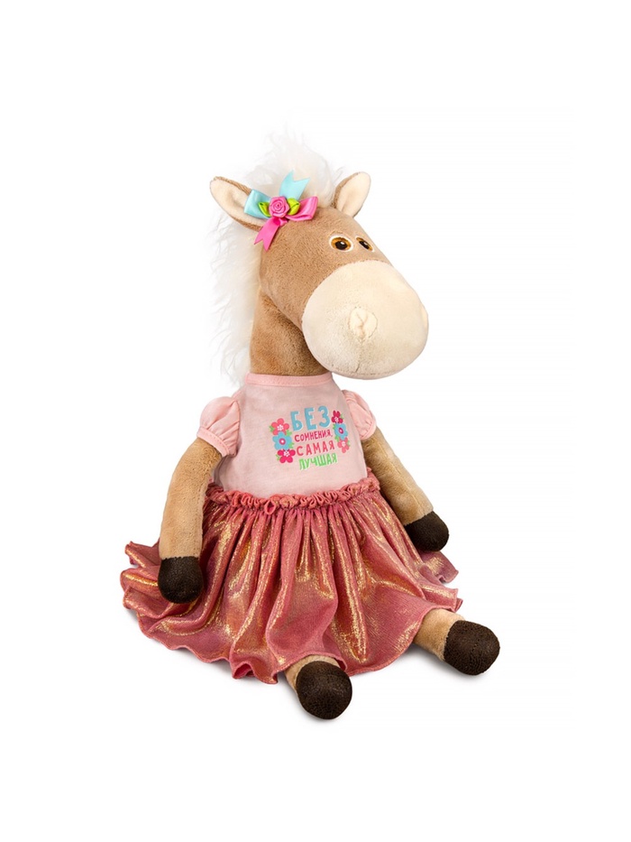 Милая лошадка Лурдес Шелдон — это очаровательный персонаж, который станет любимым другом для вашей дочери или стильным аксессуаром в интерьере. Её мягкий бежевый мех и нежный наряд создают уютную атмосферу, а удобный размер делает её идеальным спутником для игр дома или в качестве декора.