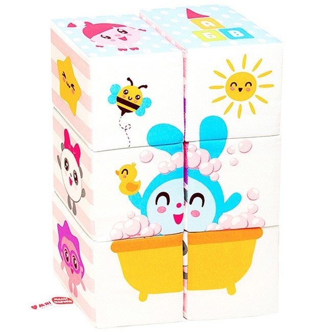 Мягкие кубики "Малышарики: Мультики" предназначены для малышей, которые только начали открывать для себя окружающий мир. На гранях кубиков изображены забавные персонажи - солнышко, пчелка, звездочка, а также сами Малышарики. Кроме того, все 6 кубиков складываются в большую картинку, на которой изображен довольный зайчонок Крош, сидящий в ванне в окружении мыльных пузырьков. Яркие и легкие кубики сделаны из качественных материалов и безопасны для ребенка.