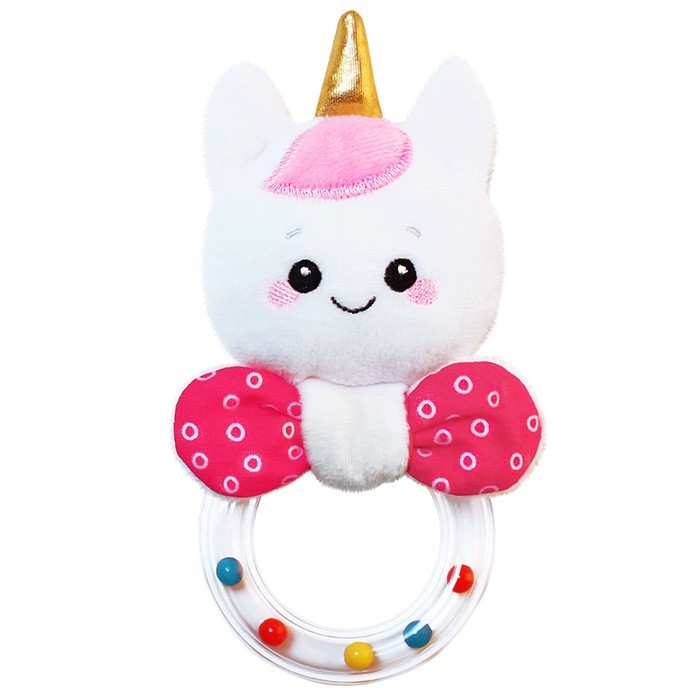 Погремушка-колечко "Единорог Лайк" создана для малышей с первых месяцев жизни. Игрушка представляет собой пластиковое колечко с разноцветными шариками внутри, сверху милая мордочка зверюшки с фактурной вышивкой. Такая погремушка помогает малышу знакомиться с первыми причинно-следственными связями (если потрясти колечко, то шарики внутри будут шумно перекатываться), стимулирует слуховое, визуальное и сенсорное восприятие. Кроме того, колечко помогает развивать хватательный рефлекс, силу и моторику ручек. Все элементы изделия выполнены из качественных гипоалергенных материалов, безопасных для здоровья малыша.
