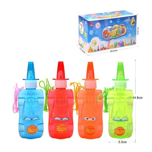 - жидкость для мыльных пузырей в пластмассовой бутылочке в форме машинки