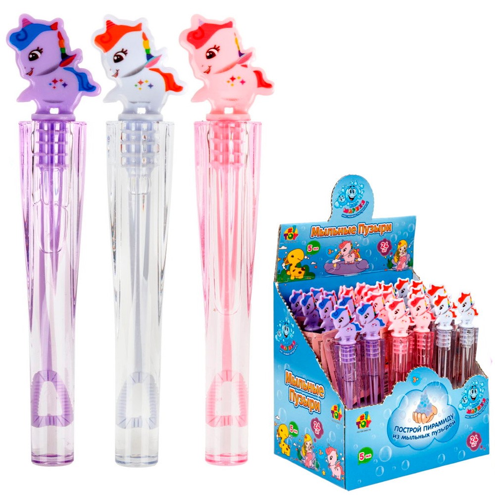 Мыльные пузыри Т25922 Мы-шарики! Нелопающиеся с фигур. крышкой Единорог 5 мл 1toy