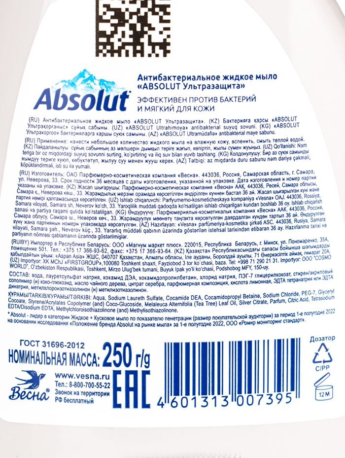 Мыло жидкое Absolut Classic «Ультразащита», 250 мл (комплект 2 шт)