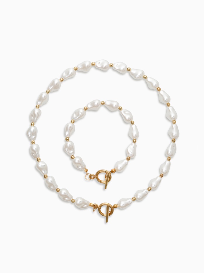 Набор 2 предмета: бусы, браслет «Жемчуг барочный», капля, 40/18 см, белый в золоте
