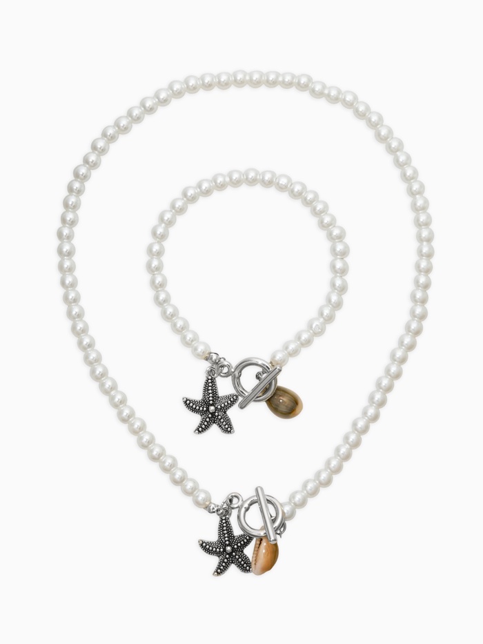 Создайте элегантный дуэт с нашим набором украшений! «Жемчуг. Звезда» — это изысканное сочетание классических бус и стильного браслета, которые подчеркнут вашу индивидуальность и добавят образу утонченности.