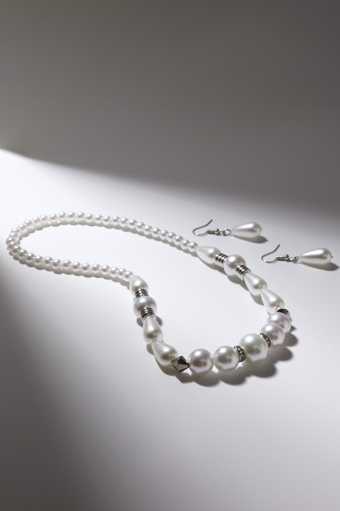 Набор 2 предмета: серьги, бусы «Жемчужная нить», цвет белый в серебре, 45 см