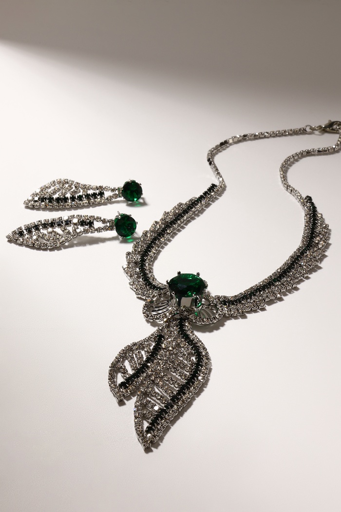 Набор из двух предметов: серьги и колье со стразами — это элегантный аксессуар с уникальным дизайном, который добавит сияния вашему образу. Этот комплект идеально подойдет для любого мероприятия, подчеркивая утонченность и стиль. Серьги и колье можно носить вместе или раздельно, дополняя образы для любого случая.