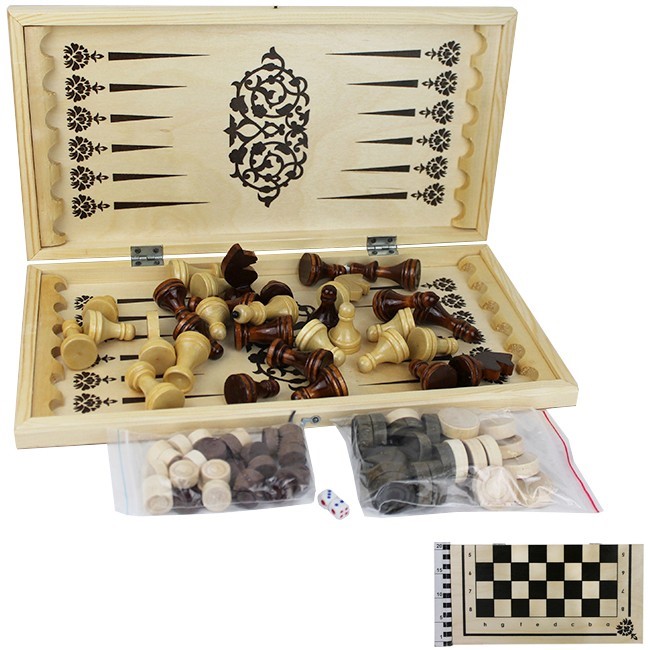 Занимательная настольная игра 3 в 1 обязательно понравится как детям, так и взрослым. Это отличный подарок, который заинтересует Вашего ребёнка. «Шахматы» - это классическая настольная игра. В эту игру любят поиграть как дети, так и взрослые. Правила игры просты и интуитивно понятны. Настольная игра отличается оригинальным внешним видом и изготовлено из качественной древесины. Игра в шахматы развивает логическое мышление, аналитический ум, стратегическое мышление, усидчивость, внимание и подарит массу позитивных впечатлений. Шахматы - настольная логическая игра со специальными фигурами на 64-клеточной доске для двух соперников, сочетающая в себе элементы искусства (в части шахматной композиции), науки и спорта.