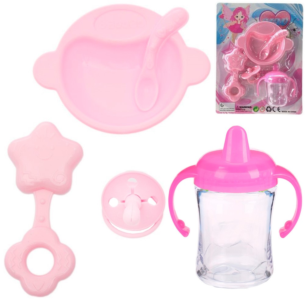 Комплектация: мисочка - 1 шт., ложка - 1 шт., пустышка - 1 шт., поильник - 1 шт., погремушка - 1 шт.