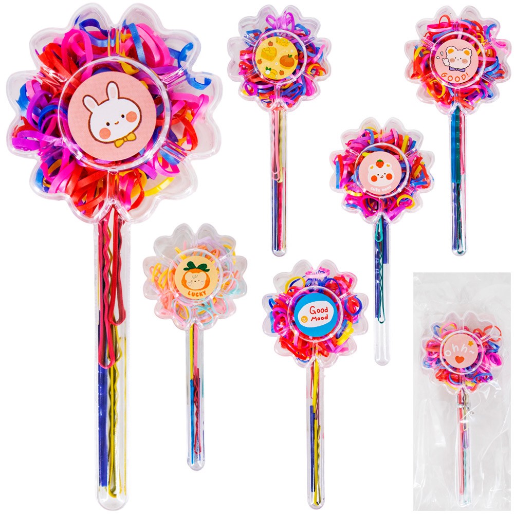 Набор разноцветных резиночек и невидимок подойдет для создания простых и сложных причесок. Для девочек и женщин. Также набор резинок подойдет для рукоделия, что развивает моторику рук. В комплекте идет кейс необычной формы- звездочки на палочке.