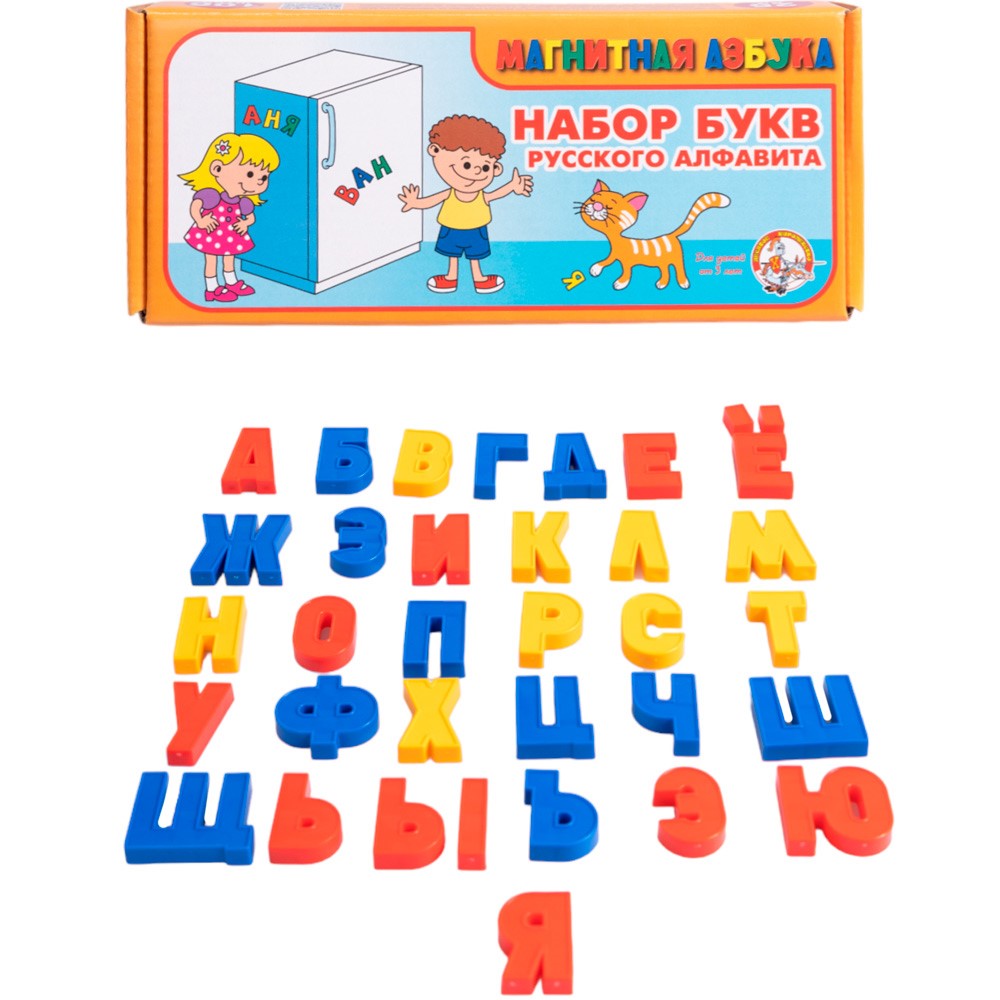 Выучить буквы и звуки, научиться составлять слова и простые слога поможет набор из 106 цветных букв высотой 2,5 см. В игровой форме процесс обучения происходит легко и непринужденно, и ребенок с радостью воспринимает новые знания. Буквы хорошо крепятся к магнитной доске, а так же к любой гладкой металлической поверхности.