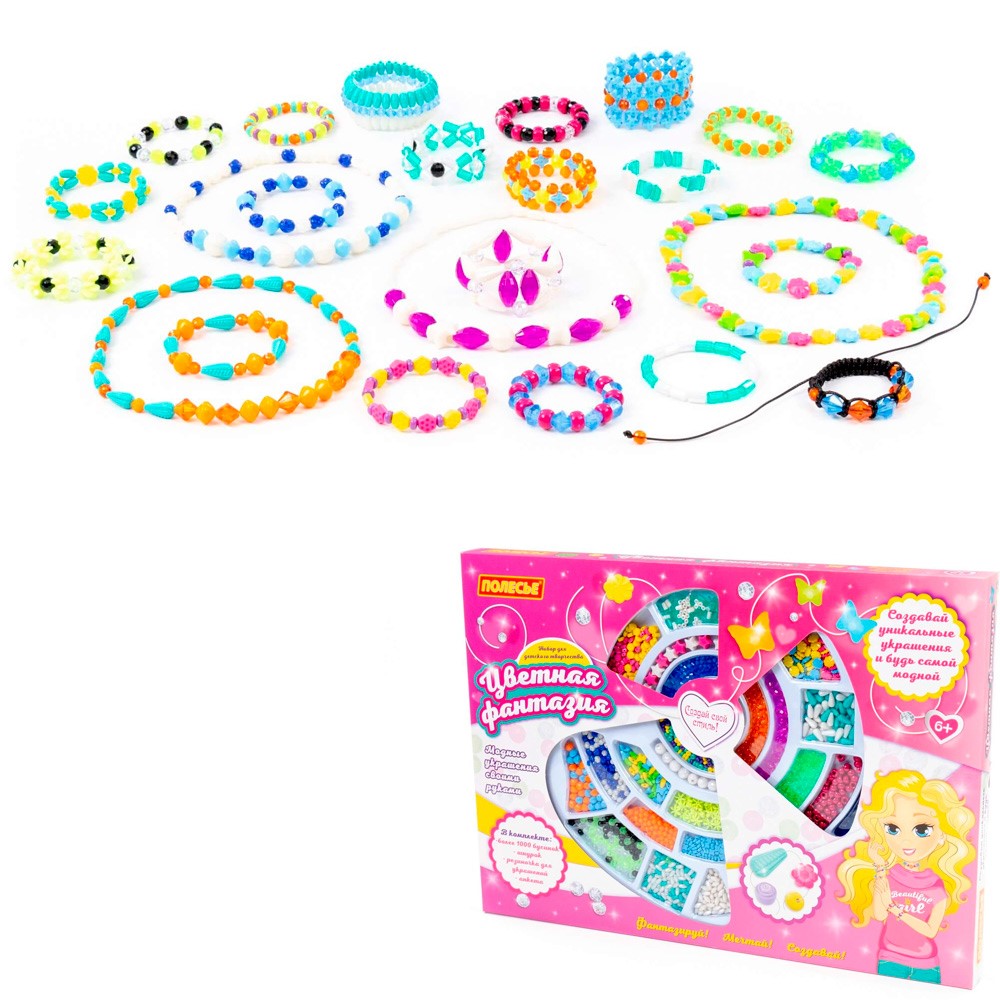 Арт-набор ярких цветных бусин придется по душе маленьким модницам и станет отличным способом весело и интересно провести время за увлекательным занятием. Изготовление бижутерии - увлекательное занятие, отлично развивающее логическое и пространственное мышление, фантазию и вкус. Комплект набора содержит множество ярких красочных бусин, из которых девочки смогут изготовить различные украшения: ожерелья, браслеты, бусы. Готовое украшение можно использовать в качестве стильного аксессуара. Такие наборы развивают эстетический вкус, зрительно восприятие, мелкую моторику, усидчивость и аккуратность. Набор отличает оригинальный дизайн юбусин, возможность сборки без лески и нитей, разнообразие форм и цветов.