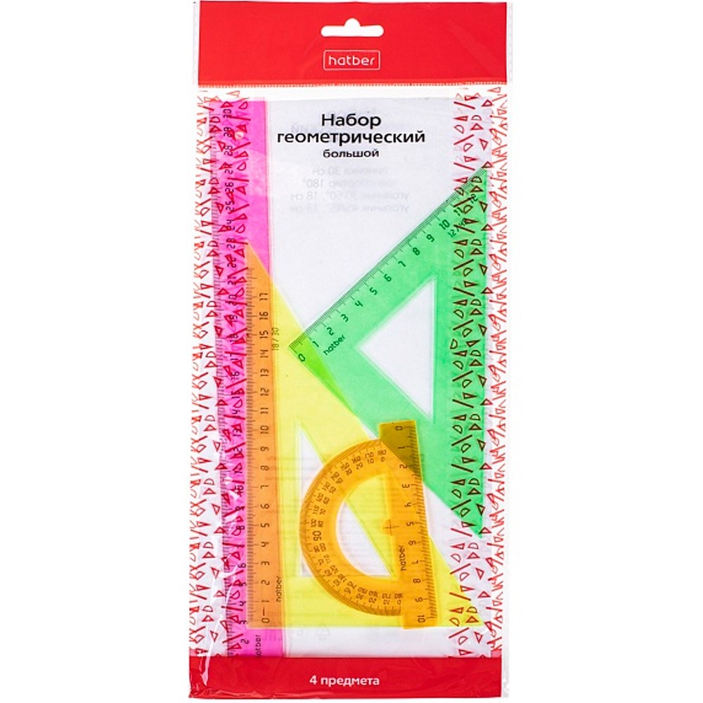 Комплектация: 4 предмета: 2 треугольника, линейка 30 см, транспортир