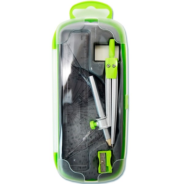 Комплектация: футляр - 1 шт., циркуль - 1 шт., карандаш - 1 шт., линейка - 1 шт., точилка - 1 шт., транспортир - 1 шт., угольник - 1 шт., ластик - 1 шт.