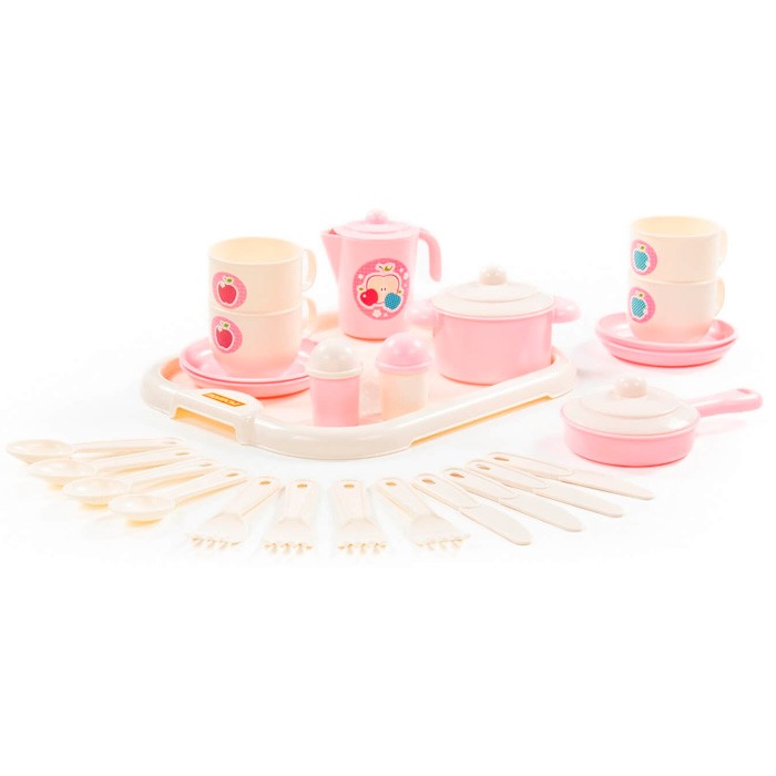 Набор детской посуды Хозяюшка с подносом на 4 персоны 29 элементов в сеточке 80479